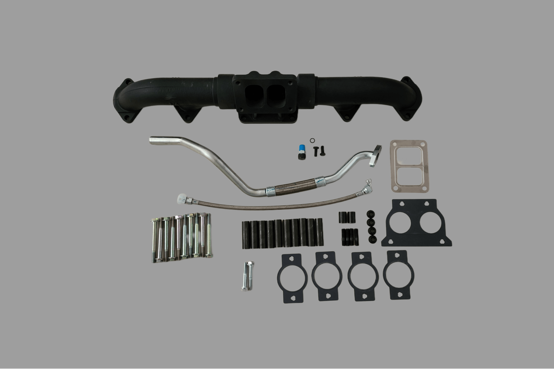 ISX T-6 EXHAUST MANIFOLD KIT WITH OIL LINES , BOLTS & GASKEST (ISXT6EXMFK)